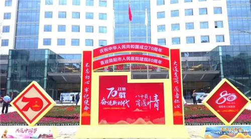國慶前夕,成都伊甸園小伙伴進(jìn)駐簡(jiǎn)陽市人民醫(yī)院,為其打造建院80周年的植物租擺。恰逢新中國成立70周年的日子,簡(jiǎn)陽市人民醫(yī)院真是雙喜臨門,場(chǎng)景感人。
