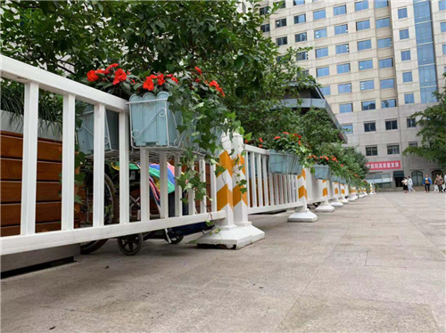 幾天奮戰(zhàn),改頭換面。雄偉壯闊的門診大樓前,飄揚(yáng)著鮮艷的紅旗,旗臺(tái)下的方正花圃形成自然隔離,靜靜守護(hù)著這片神圣莊嚴(yán)之地。