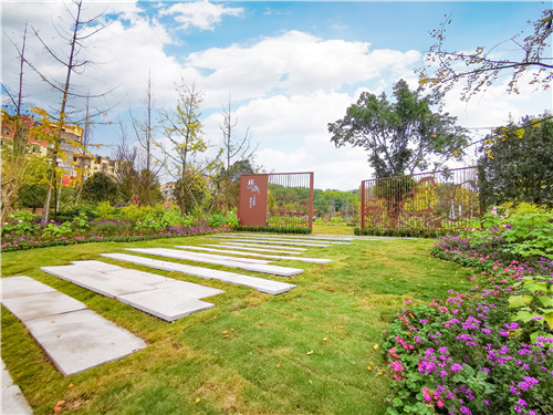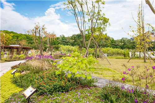 為了打造清新、雅致、舒適、愉悅的芙蓉花景,伊甸園花卉的能工巧匠,充分利用原有綠植資源,力求保留原有場地功能,在不浪費不破壞的前提下,重新梳理空間布局,巧妙融入簡陽人文。通過一條空間主軸、一條游覽主線,連接起八個承載芙蓉文化和簡陽文化的特色景觀: