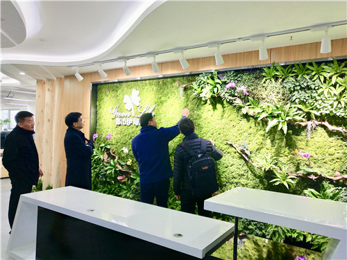 陳副秘書及楊會長對我公司立體綠墻表現出了濃厚的興趣,周君先生對立體綠墻的施工工藝、發展趨勢等進行了詳細講解。