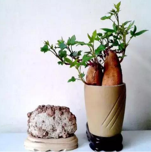 價值:紅薯盆景不管橫放還是豎放,都是一道獨特的風景。當長到枝葉繁茂時,可以 將紅薯葉剪下來炒菜吃,營養豐富。