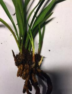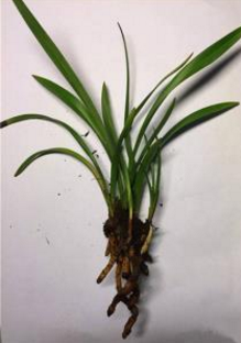 激素草特征一:蘭葉多為矮壯型,新生蘭葉和老葉的強弱差別不大,但爛根較粗,與整體株型不協調。真正的矮壯蘭花,根系較長并多,大家選苗的時候可以參考。