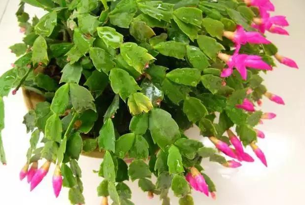 蟹爪蘭生長迅速,在養(yǎng)護過程中,有時一個節(jié)上會長出4~5個新枝,此時要及時剪除,留下1~2個。如果莖節(jié)上有許多瘦小的花蕾,也要摘掉一些,可以使花朵大小一致,開花更旺盛。