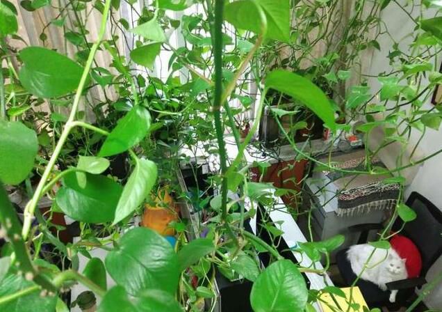 先來一組小伙伴們養(yǎng)的爬滿屋子的綠蘿實況,雖說有的顯得有點凌亂,但并不妨礙它們長得高大的事實