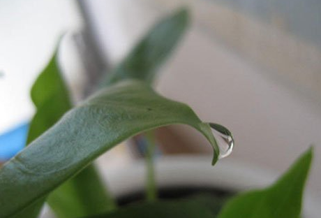 滴水觀音為熱帶和亞熱帶常見觀賞植物,當在空氣溫暖潮濕、土壤水分充足的條件下,便會從葉尖端或葉邊緣向下滴水??吹竭@里花友有沒有看出幾個滴水觀音滴水的要點,空氣溫暖、潮濕、土壤水分充足,我們可以認為滴水觀音之所以滴水是在自我調節。