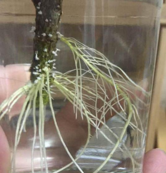 3、扦插完成后,將容器放在通風處,水少了后直接加沉淀過的自來水,根據溫度及枝條不同,大約15-40天即可生根