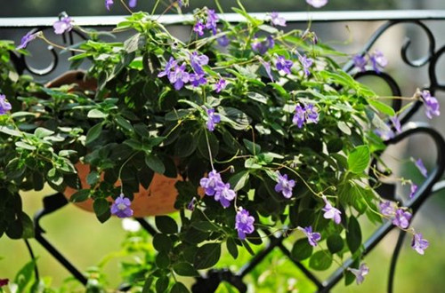 海豚花不耐陽光直射,在半陰環境下就可以開出很漂亮的花來,懸掛種植很容易就能收獲一面花墻,平時4、5天澆一次水即可。