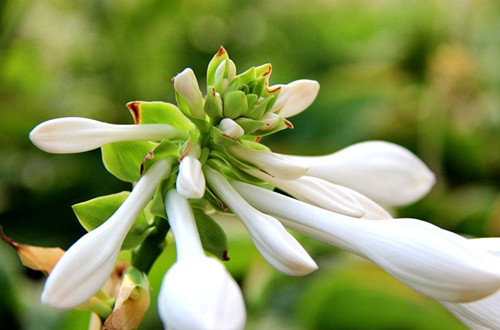 玉簪花原本就長在陰濕的環境里,因此比較喜陰,受到陽光直射反而會干尖、黃葉,在室內養護時,可以4、5天澆一次水,平時多往葉片上灑水。