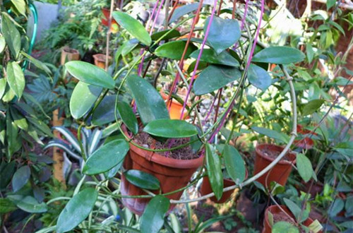 球蘭喜歡高溫高濕的半陰環境,在室內可以爬藤長出大窗簾,大約4、5天澆一次水,平時要多往葉片周圍噴霧保濕,花期比較短。