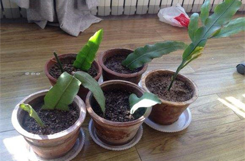 2、曇花在扦插時要選取健壯,肥厚葉狀莖作插穗,一般選用2年生以上的老葉子比較好,葉片不能選的過小也不能過嫩,過嫩的枝條插后易腐爛或萎縮,老葉片已經不會生長新葉,便會形成新的生長點,根系發達生長。