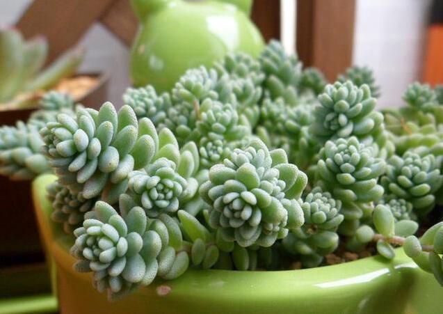 推薦理由:姬星美人價格非常便宜只要3到5元。株型非常小巧可愛,是迷你型的多肉品種。生命力強,是暴盆的理想品種,郁郁蔥蔥,著實可人。而且繁殖能力特別強大,枝條上會長出不定根,可以將這些不定根剪下來晾干后,進行扦插繁殖,時間最好在秋季,因為涼爽的季節是它的生長期。還要注意控水,姬星美人較為耐旱,水大了容易徒長,導致葉片松散,影響株型美觀。