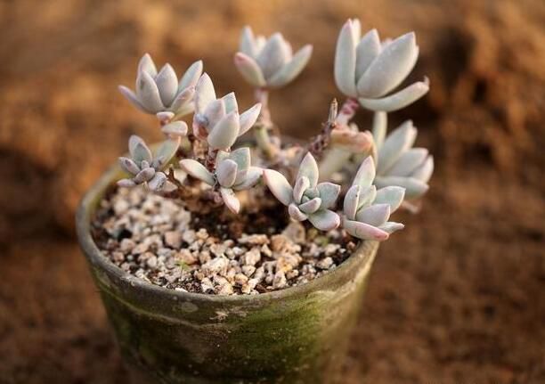 推薦理由:植株小型,無莖的蓮座葉盤非常緊湊。卵形葉較厚,帶小尖,藍綠色被濃厚的白粉,葉緣為美麗的深粉紅色。吉娃娃是外形非常好的景天品種,觀賞性極強,樣子絕不輸給靜夜,月影,月光女神,但是價格卻只要5到10元左右。