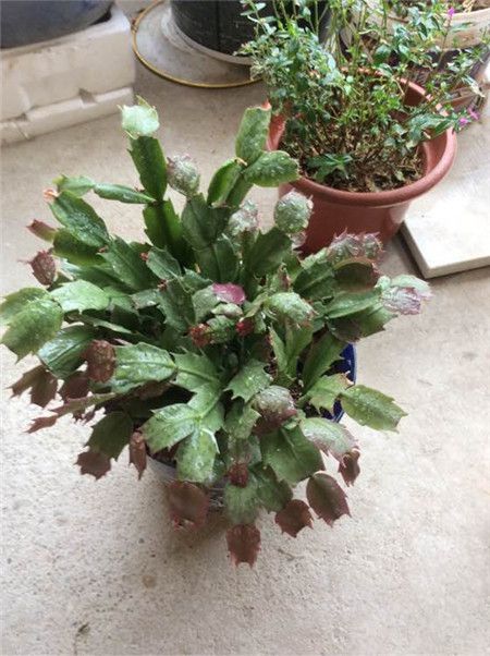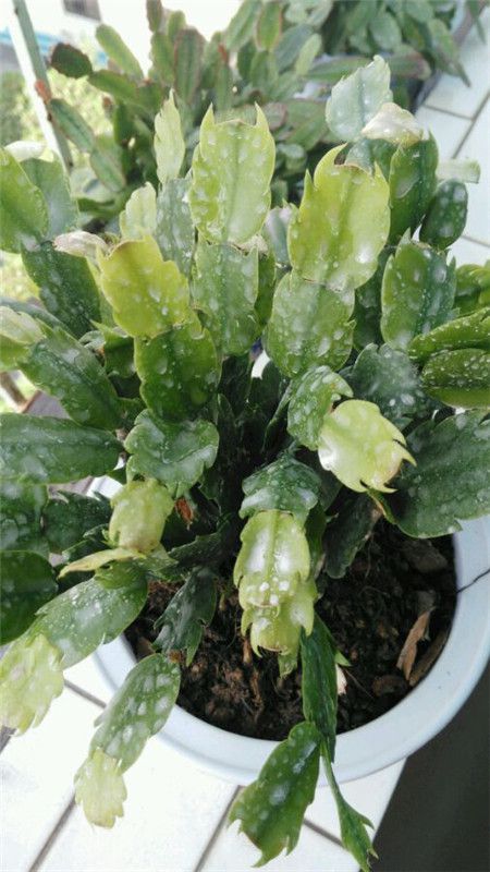 首先,不開花的時候不能噴花多多,不僅不會促進蟹爪蘭的生長,反而會起到反作用。另外,環境有點悶,環境比較潮濕,葉片上出現銹色凹陷的斑點。