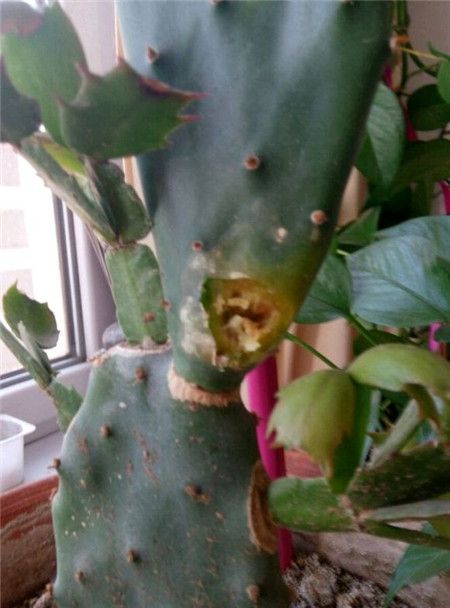 仙人掌這個地方爛了,怎么辦,上面還嫁接這蟹爪蘭呢,會不會影響生長?