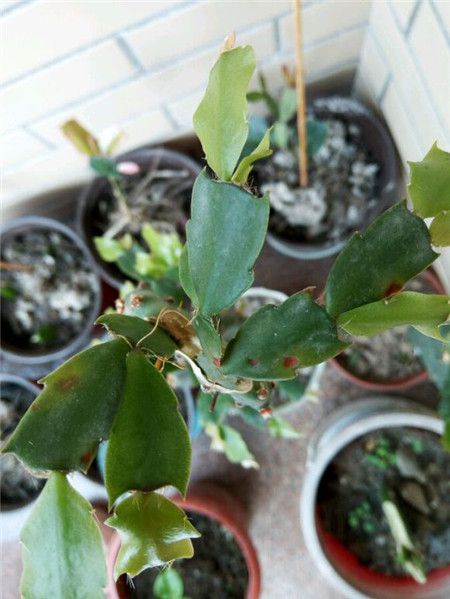 先不要施肥,環境或土壤過悶,導致蟹爪蘭有點生長不良。放陽臺通風散光處!葉面每日噴霧幾次,你試下看有沒好轉。如果葉片越來越蔫,狀況沒有改善,可能是根出了問題,可以考慮換土修根。
