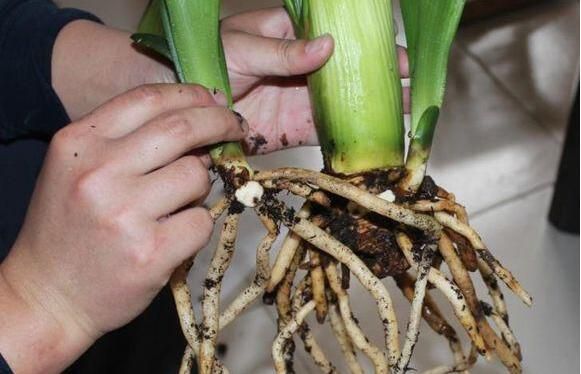 1、將君子蘭母株從盆中取出,取代根部的土壤,仔細觀察可以分株根系。