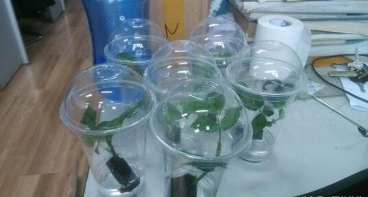2、扦插好的放置在裝了淺水的容器上